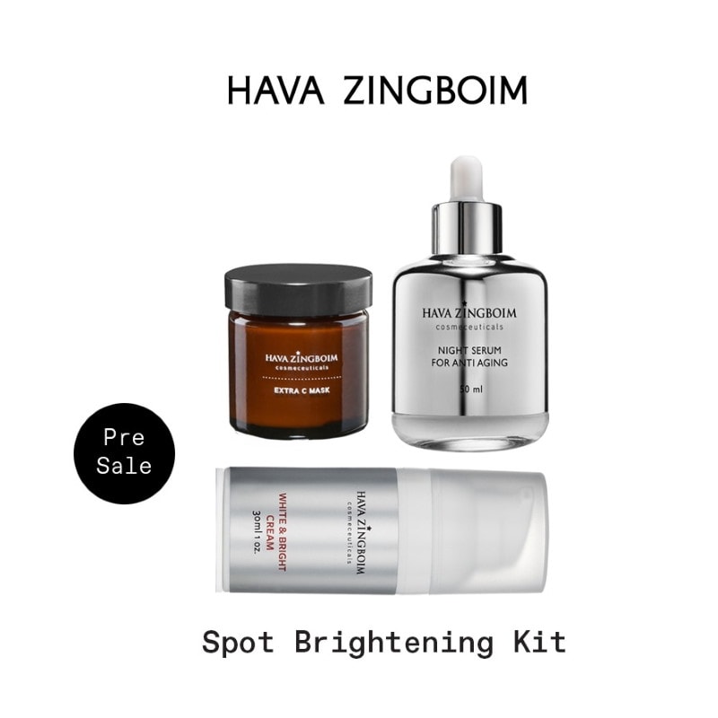 הערכה כוללת את ה – White & Bright קרם הבהרה חוה זינגבוים – קרם מתקדם להבהרת כתמי פיגמנטציה, ולעיכוב ומניעת היווצרות כתמים חדשים;